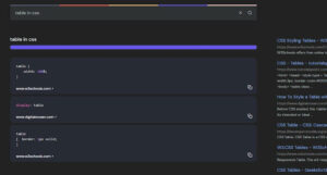 Dans l’exemple que vous pouvez voir ci-dessus, vous pouvez constater qu’il affiche dans la colonne de gauche la solution pour créer des tableaux en CSS. Bien qu’il ne s’agisse pas d’un tutoriel complet comme ceux que l’on trouve sur des forums spécialisés, il donne simplement des conseils généraux.